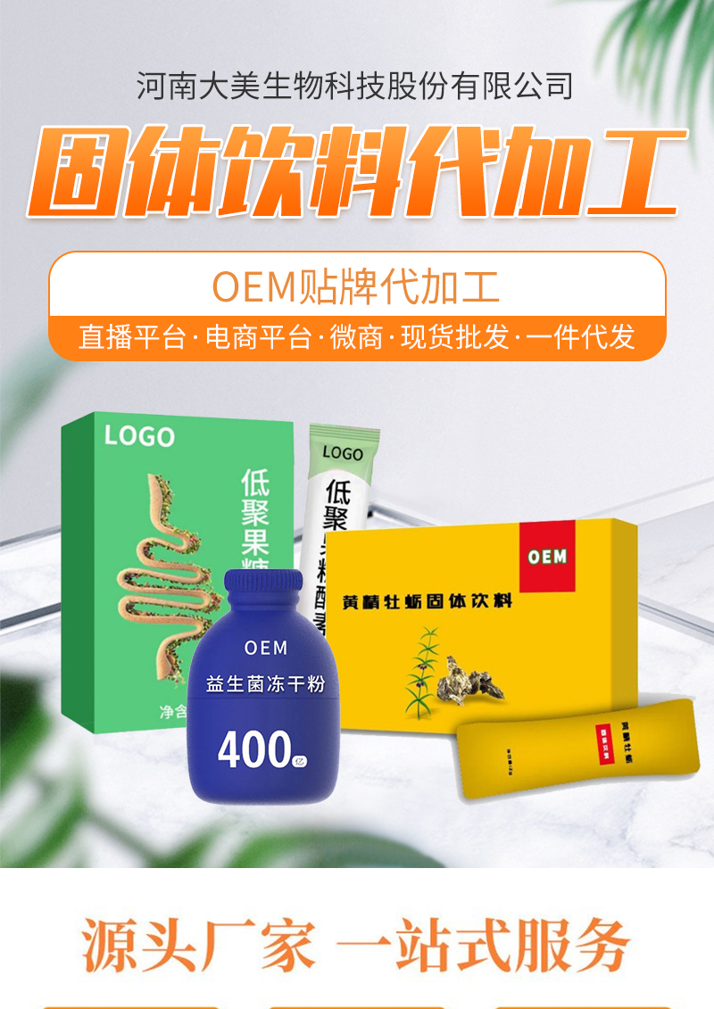河南大美生物科技股份有限公司專注于固體飲料、壓片糖果、代用茶、口服液、SC食品、特膳食品的科研、生產(chǎn)、銷售。公司生產(chǎn)研發(fā)設(shè)施設(shè)備完善,現(xiàn)擁有凈化車間標(biāo)準(zhǔn)廠房7000平方,廠區(qū)擁有SC食品生產(chǎn)線、代用茶生產(chǎn)線、固體飲料生產(chǎn)線、軟糖生產(chǎn)線。公司研制開發(fā)了土黃金、雪里謎、伯格益美等十個(gè)600多種產(chǎn)品.